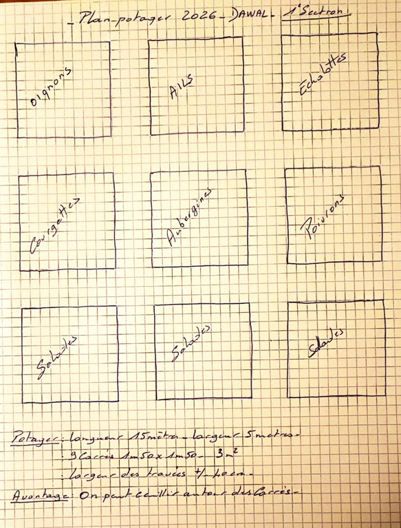 L’hiver, c’est aussi la préparation du printemps, eh oui! La Nature a besoin qu’on s’occupe d’elle, avec Amour. Les quatre pommiers sont allés chez le coiffeur, pour se fortifier un peu. Et le terrain qui va accueillir les futures plantations a été préparé. Une réflexion a été menée quant aux légumes qui y seraient plantés.